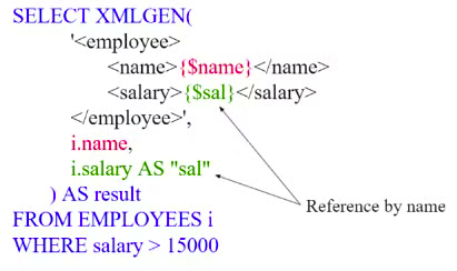 XMLFOREST β produces a list of simple elements, same params as XMLATRIBUTES