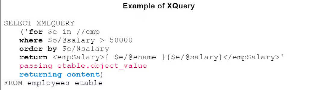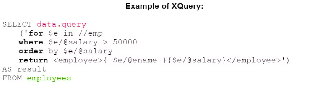 - 2.4 XQuery in DBMS - XQuery on DB2, Oracle and SQL Server