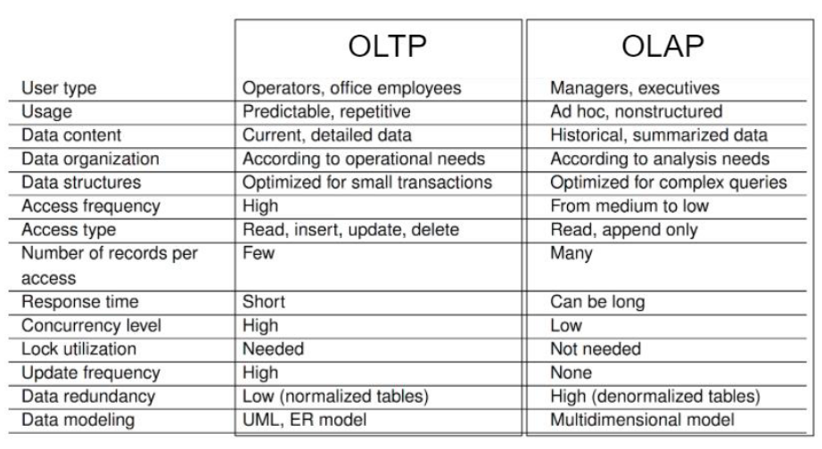 OLTP Systems β Operative databases (elaboration of online transactions) OLTP are traditional databases optimized to support daily operations: